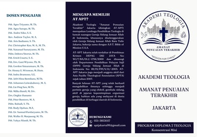 Amanat Penuaian Terakhir Theological Academy (AT-APT) Jakarta, didirikan pada 1999, berkomitmen untuk membekali pemimpin gereja yang siap mempengaruhi dunia demi kemuliaan Tuhan.